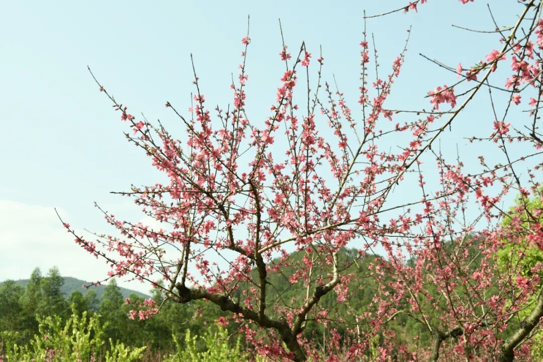 远处的青山、近处的桃林