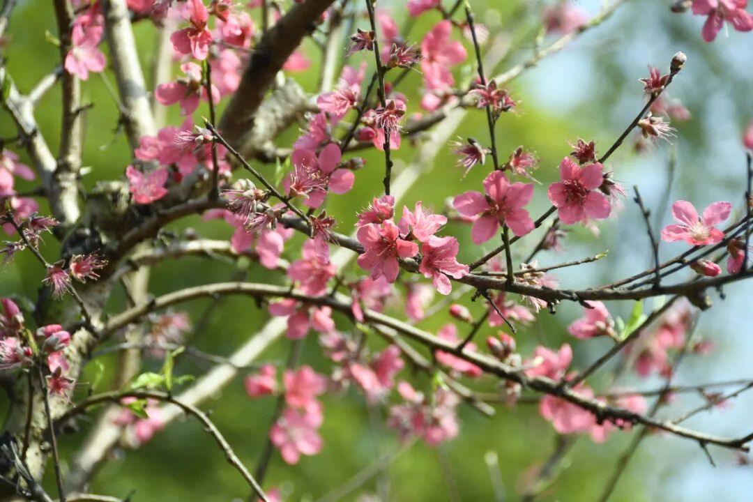 漫山遍野的桃花竞相吐艳,